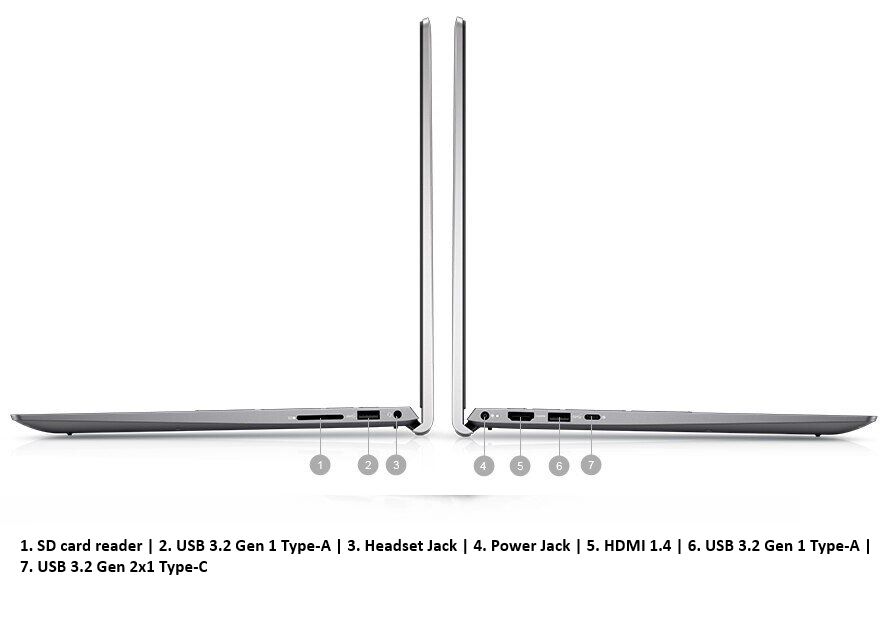 • Cổng kết nối đầy đủ: USB-C (DisplayPort, Power Delivery), 2x USB-A 3.2 Gen 1, HDMI, khe thẻ SD, jack 3.5 mm.