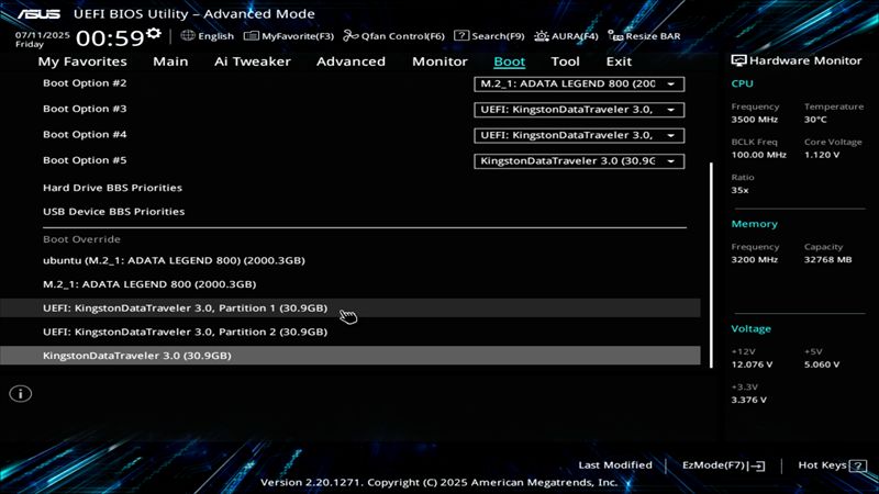 Trong BIOS, chọn khởi động từ ổ USB của bạn