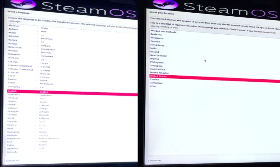 Sau khi lựa chọn cài đặt thủ công thì bạn thiết lập ngôn ngữ của SteamOS như hình
