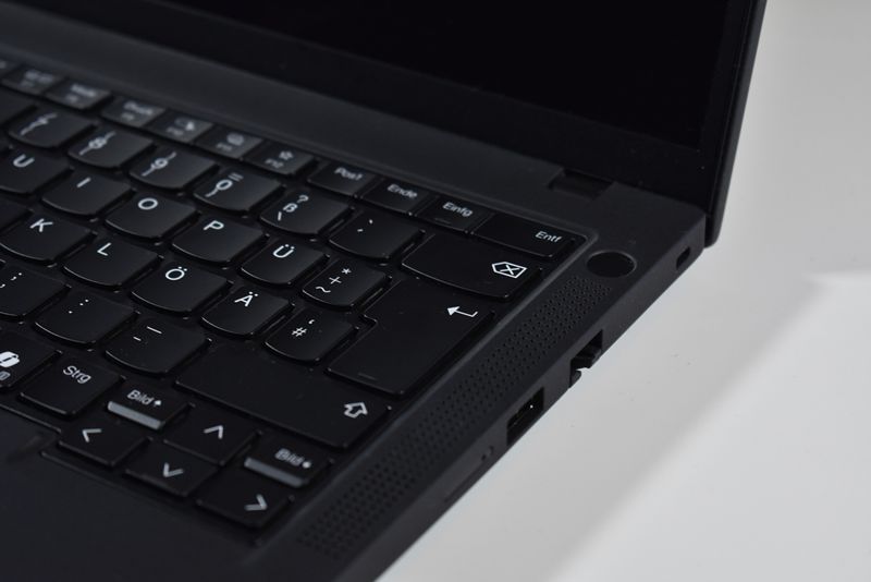 Bên phải: Smartcard reader, khe nanoSIM, USB-A 3.2 Gen 1 và cổng mạng RJ45 – rất hữu ích cho quản trị viên hệ thống, kỹ sư mạng và môi trường doanh nghiệp.